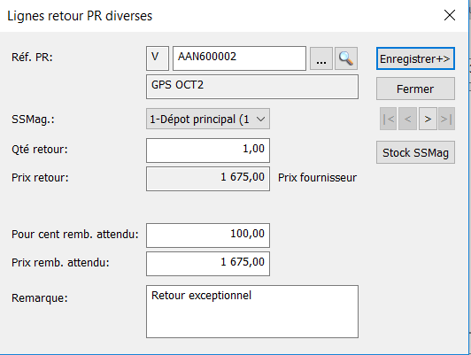 Cliquer sur Nouv. pour ajouter une ligne – Saisir la référence la Qté retour et la justification.