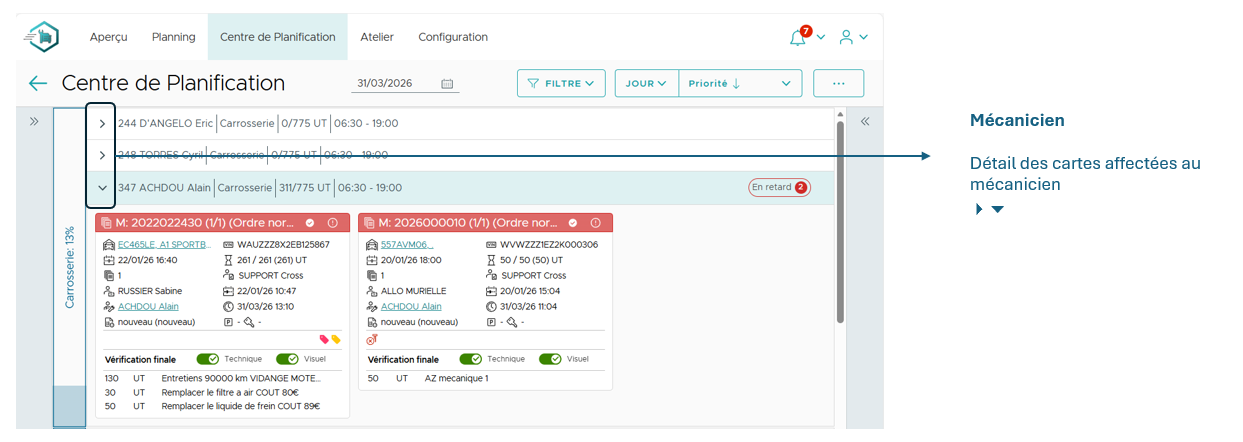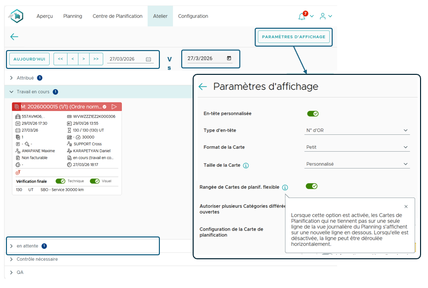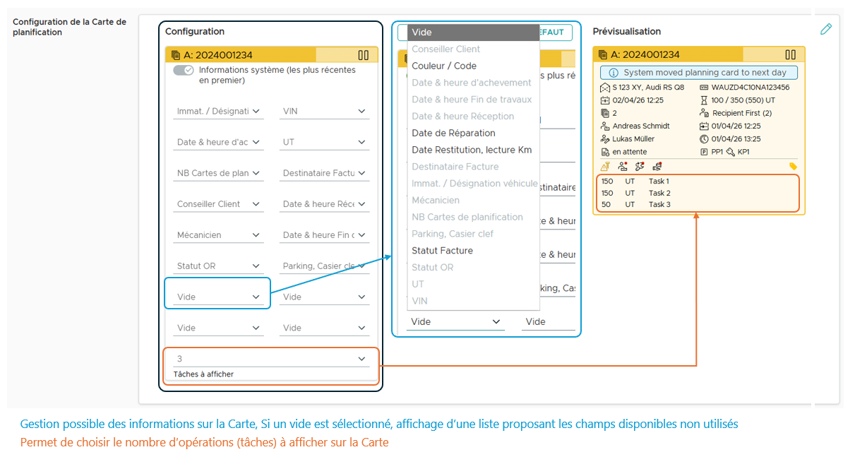 En plus des modalités d'affichage de la Carte : taille, entête, ... vous disposez d'une possibilité de gestion et de priorisation (organisation) de l'affichage des informations de l'OR directement dans la Carte.