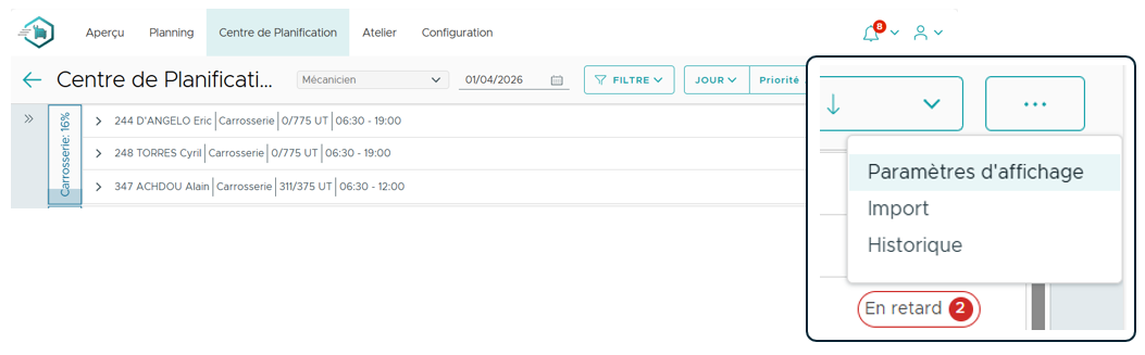 A noter que ce menu d'affichage est disponible dans toutes les vues et environnements.
